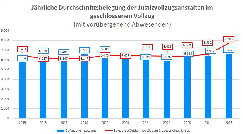 Für das Haushaltsjahr 2025 sind im Staatshaushaltsplan für die Justizvollzugsanstalten vorgesehen: